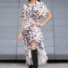- Vestido estampado largo camisero manga corta murciélago con nudo en cintura